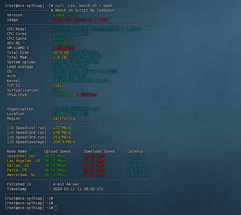 开的一个2核2G机器,处理器:E5-2660,硬盘平均读写能力(I/O):254.3MB/s